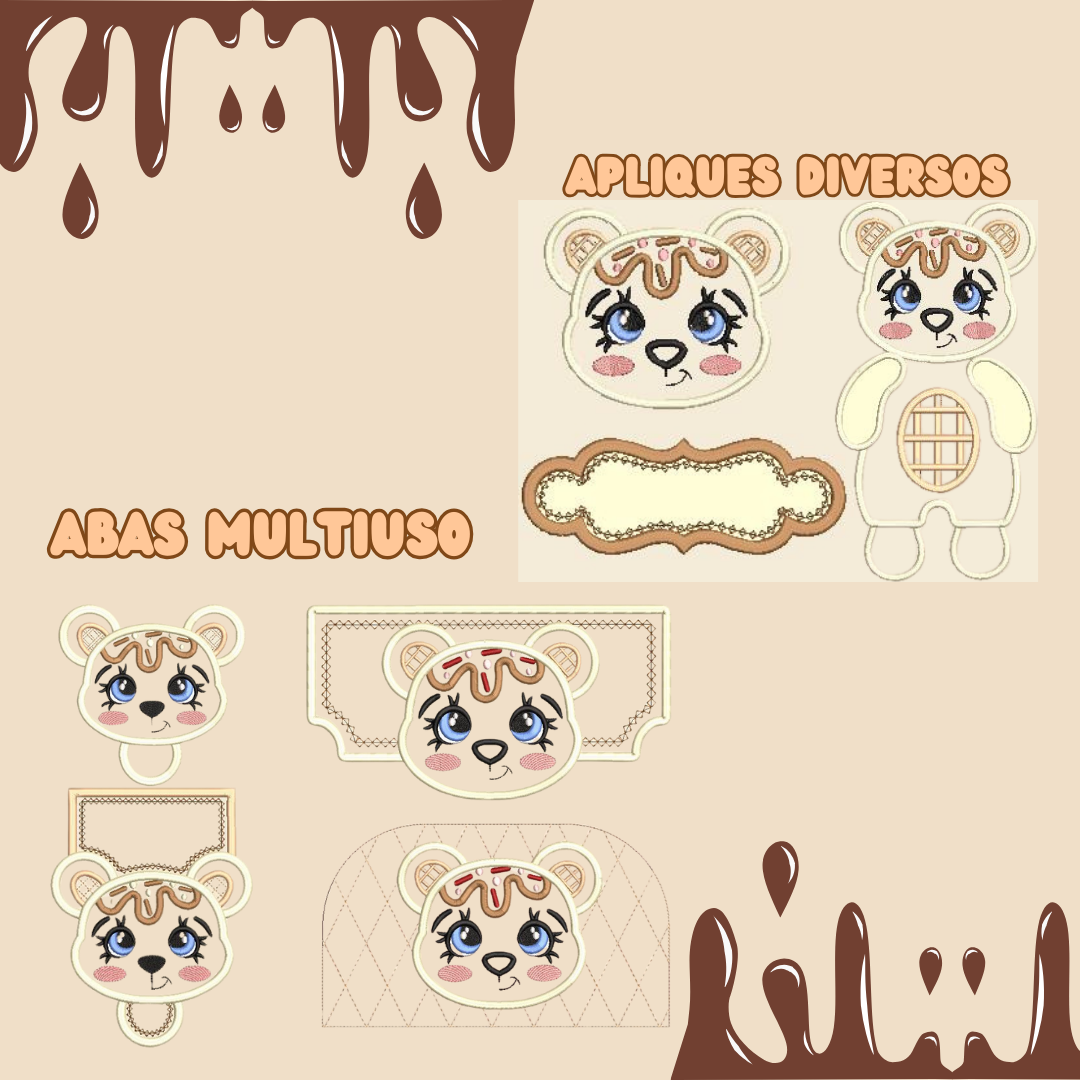 - Matrizes Digitais Exclusivas: Arquivos para confecção do Ursinho Panqueca e outros apliques lúdicos, para usar em diversos produtos como pelúcias, naninhas, tags, chaveiros e muito mais.