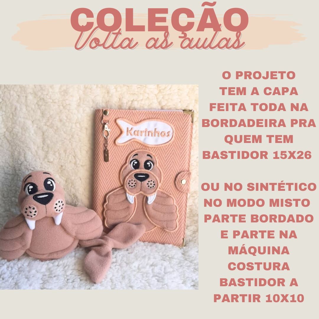 Com o tema Leão Marinho, você poderá confeccionar cadernos e estojos de forma prática e descomplicada, utilizando sua bordadeira e apenas algumas junções à mão ou à máquina. Um projeto pensado com carinho para quem deseja peças únicas e de alta qualidade.