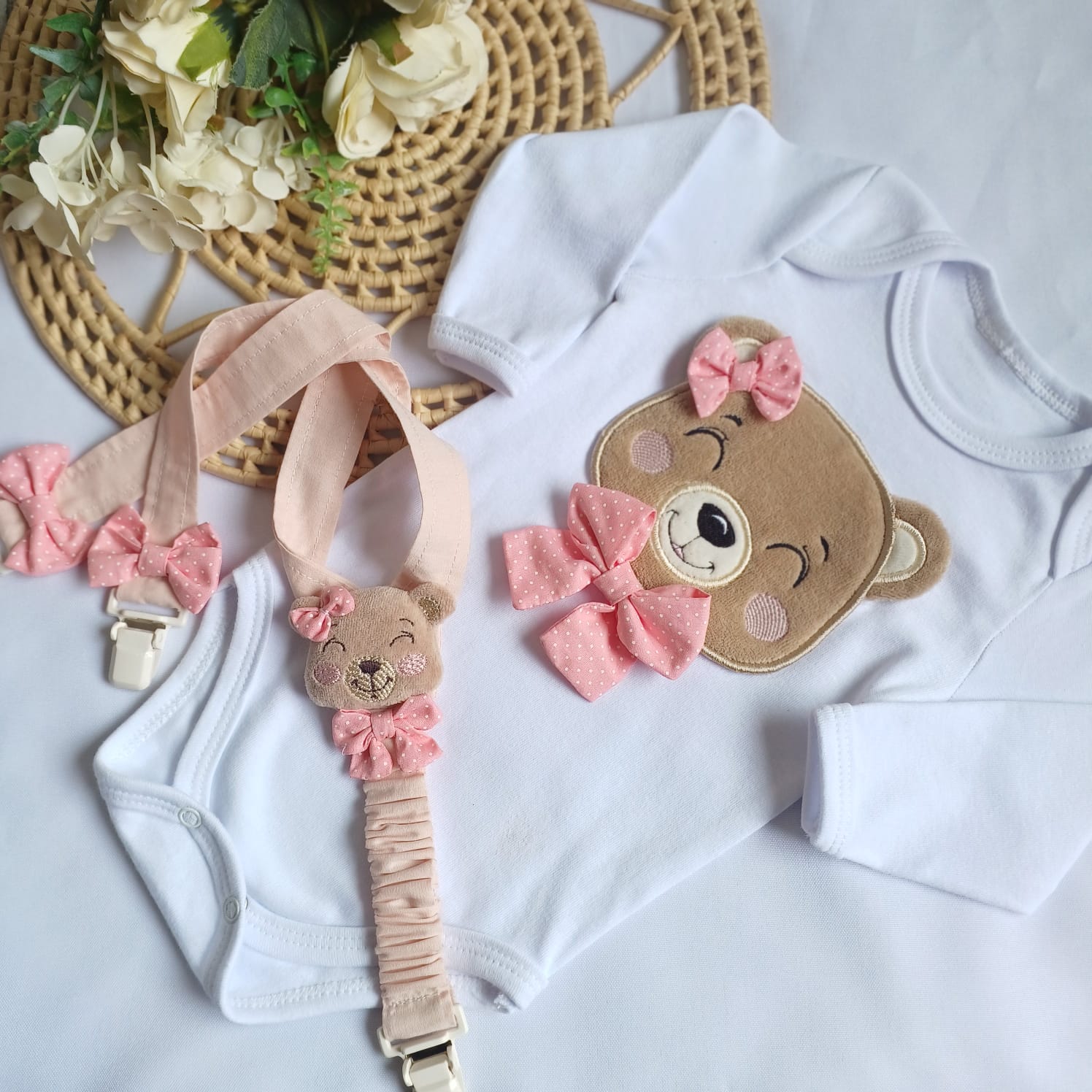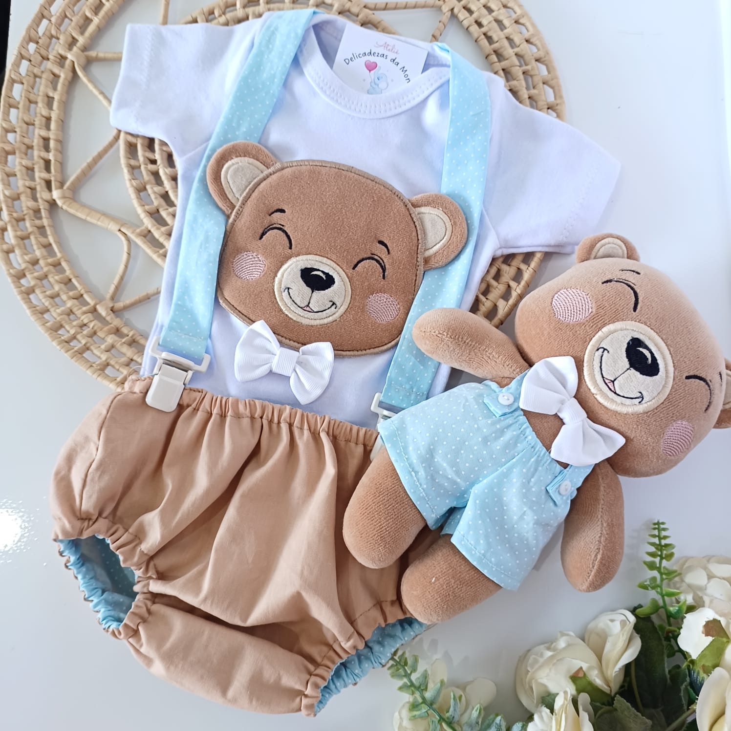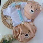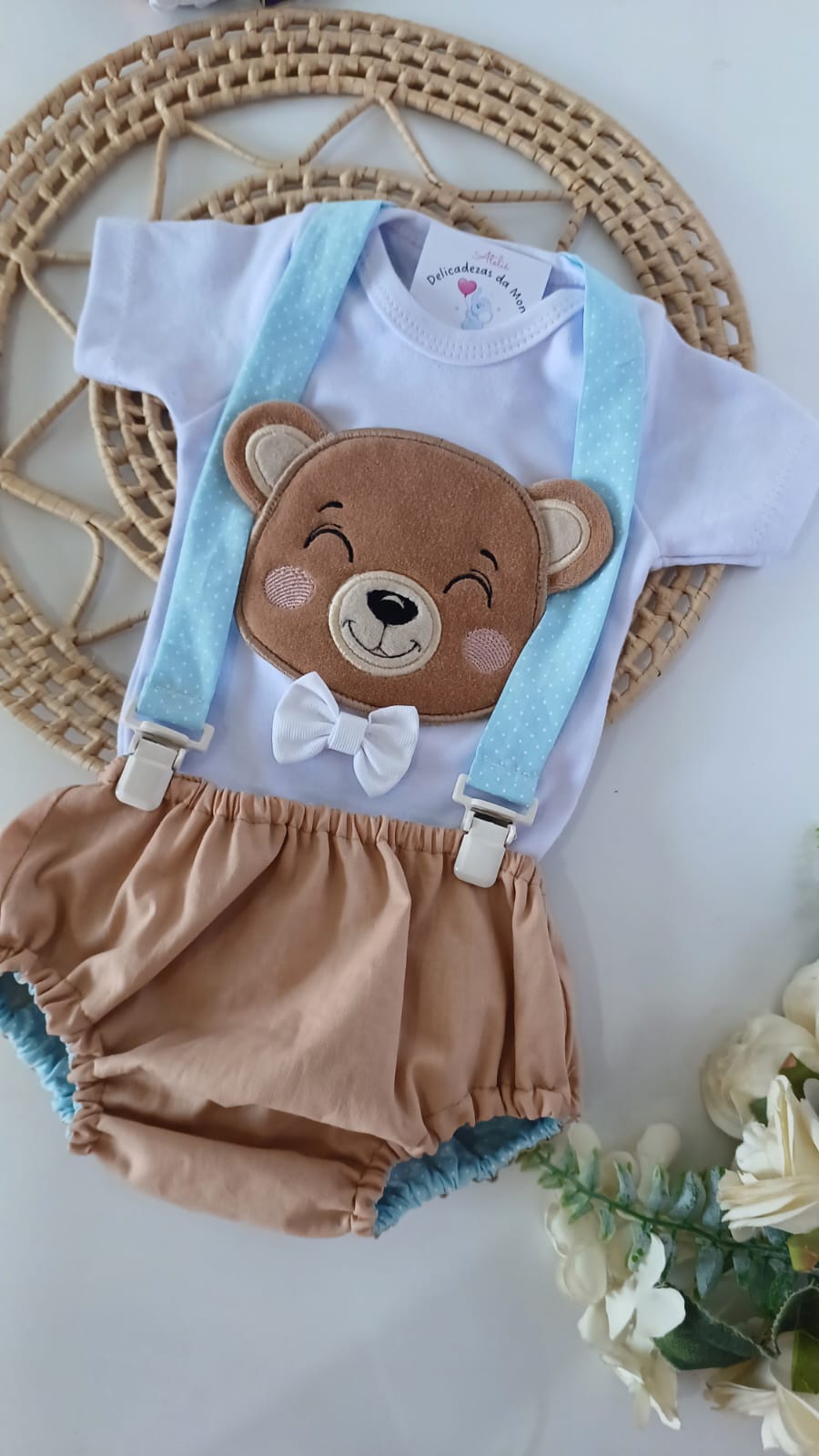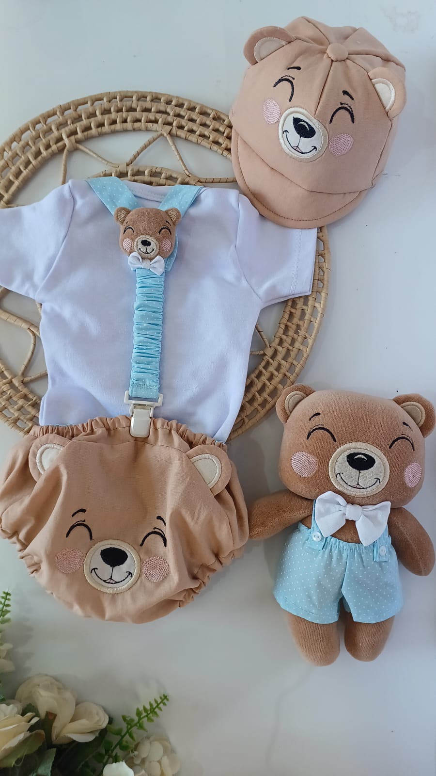 Com os designs lúdicos do Ursinho Floquinho trouxemos a proposta de um lindo Tapa Fraldas, compondo um look completo para os pequeninos com  Body, Boné e Suspensório temático ,você levará suas criações a um novo nível de fofura, conquistando novos clientes e fidelizando os antigos.