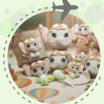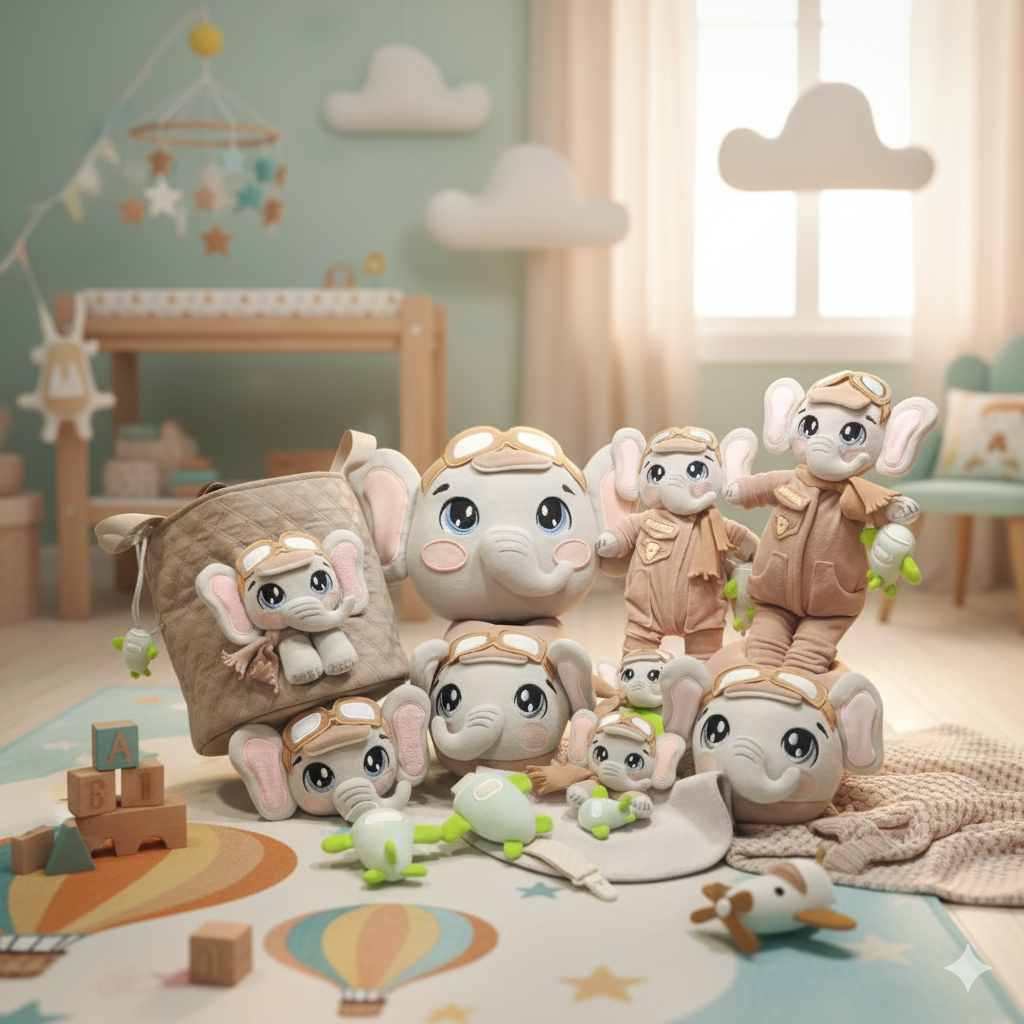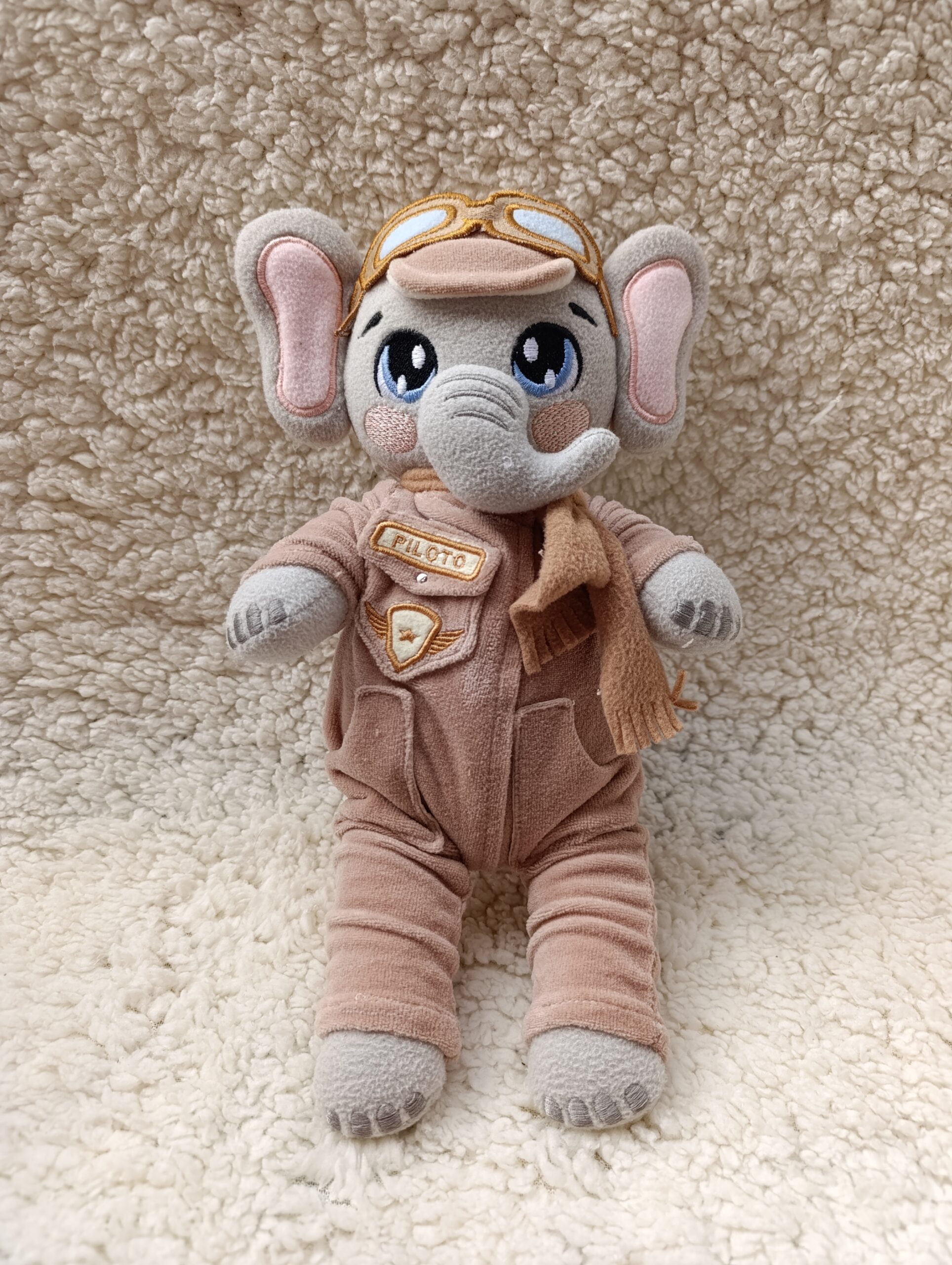 Elefantinhos aviadores em 2 tamanhos de bonecos
