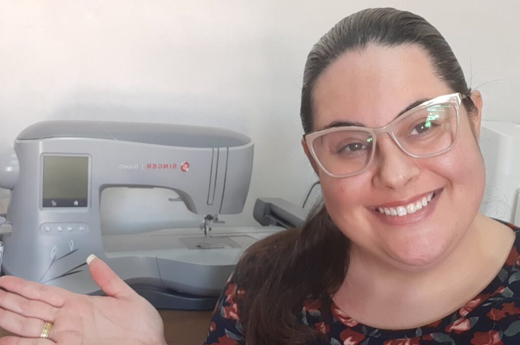 Minha primeira máquina e meu xodó, uma Singer Superb EM 200 e aliás tenho ela até hoje, se tornou de certa forma uma amiga, ela secou muitas lágrimas pois mesmo com muitas dores eu ia lá e mexia e até achava que bordava kkkkk. Me Lembro que nos primeiros dias quebrei muitas, mas muitas agulhas e perdi vários tecidos mas eu literalmente mergulhei de cabeça no mundo do bordado. No início, não havia cursos disponíveis, então aprendi na prática, enfrentando desafios a cada ponto.